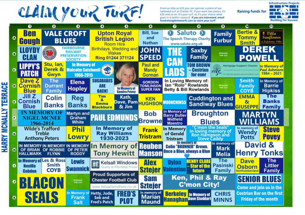 Email fundraising@chesterfc.com to Claim Your Turf.